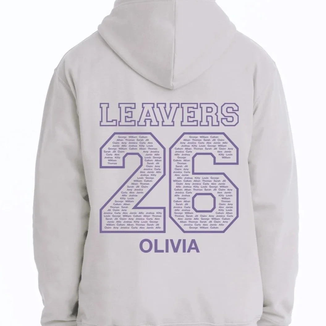 Each hoodie will feature the school logo embroidered on the front and a large leavers design on the back, including the names of all students in the year group.
